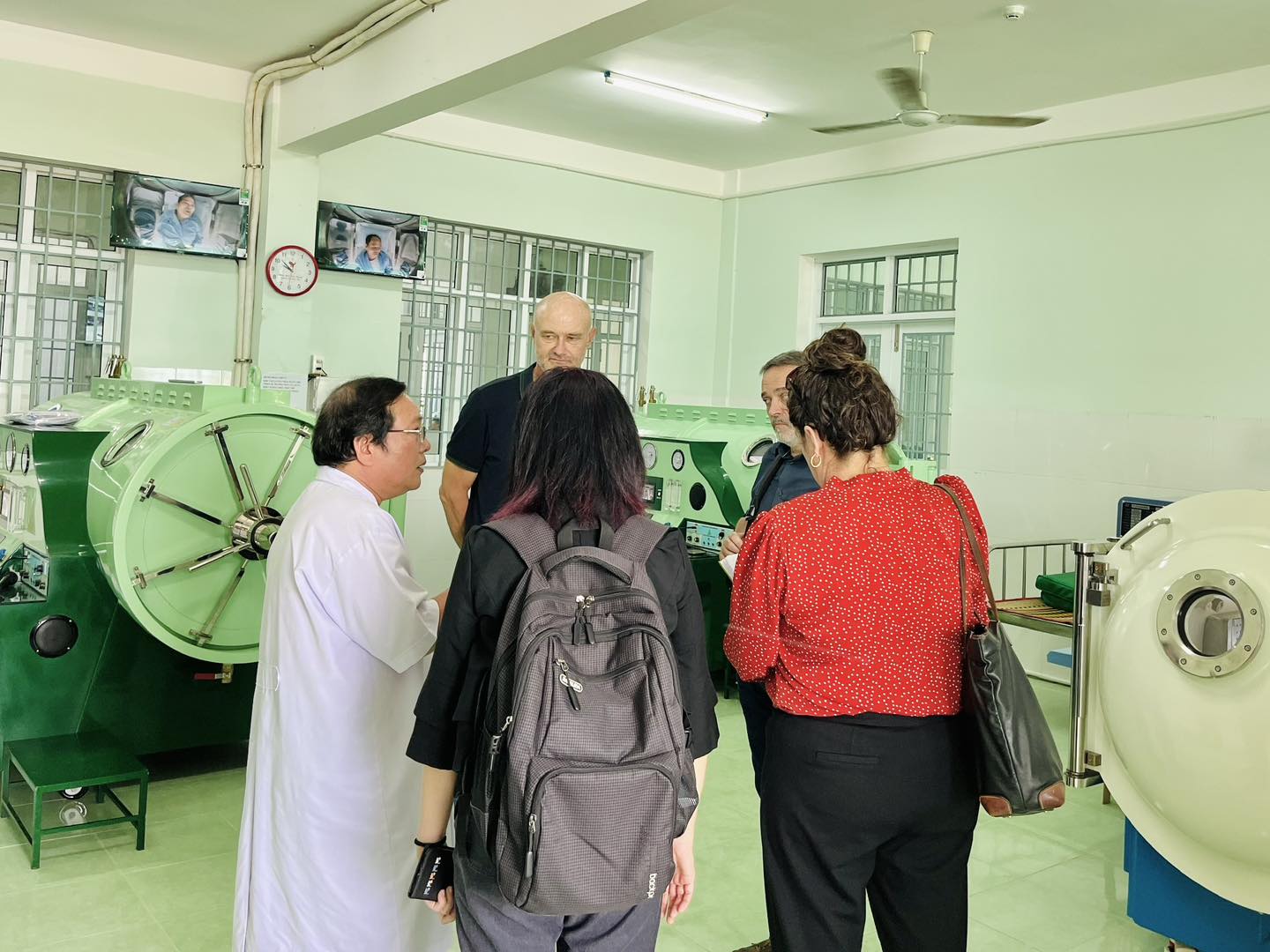 Trong khuôn khổ chuyến thăm, đoàn đã tham quan các khu vực dịch vụ kỹ thuật tại Khoa Phục hồi chức năng của bệnh viện như: