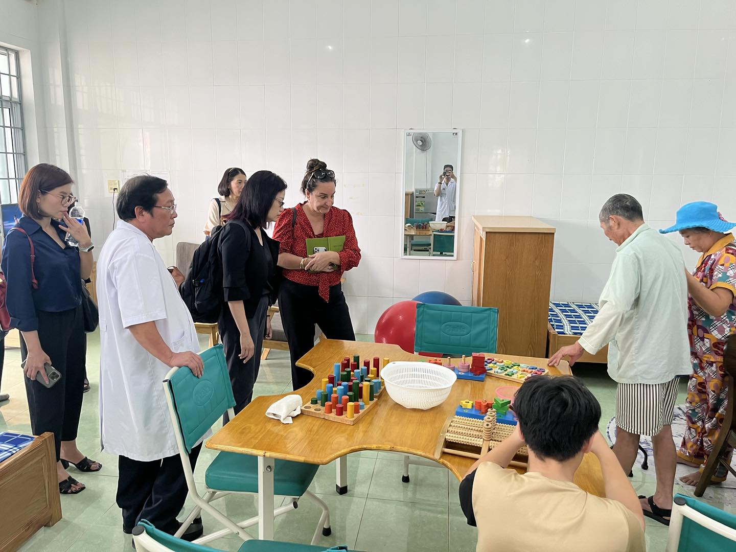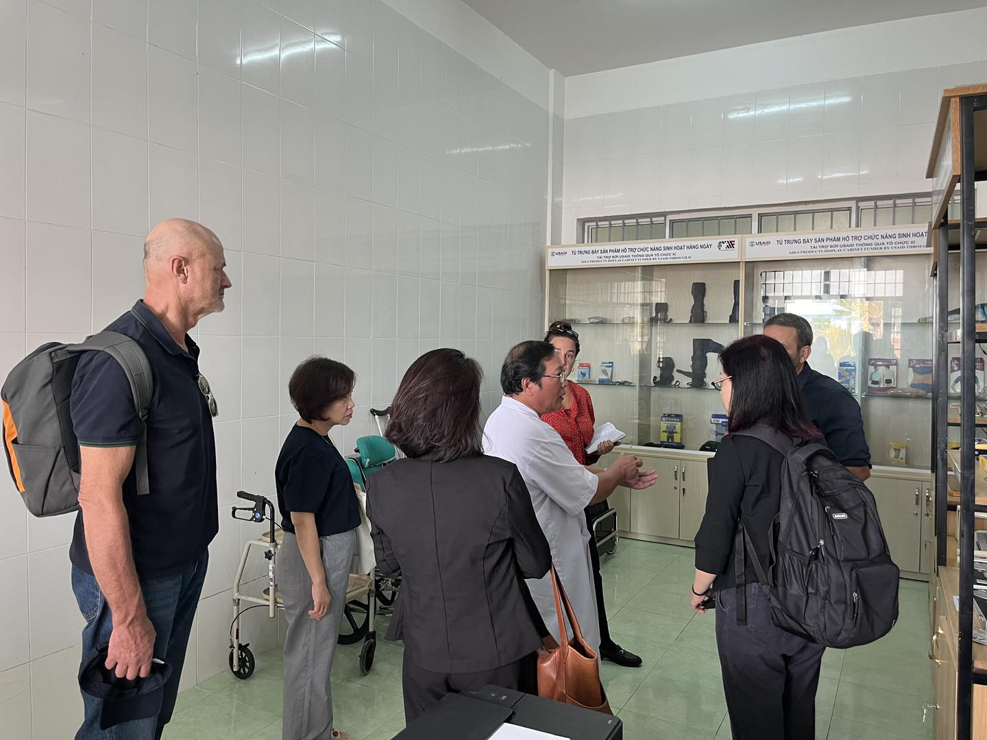 Trong khuôn khổ chuyến thăm, đoàn đã tham quan các khu vực dịch vụ kỹ thuật tại Khoa Phục hồi chức năng của bệnh viện như: